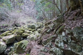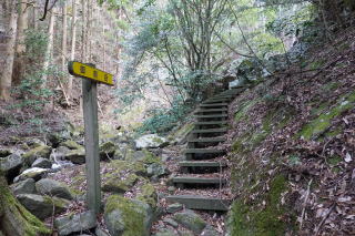 林道はジグザグに続いているが、登山道は山を突っ切るように伸びており、八ツ滝と呼ばれる滝のあたりまでは一直線のコースだ。