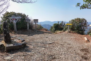 山頂には標高を示す表示板と道しるべの道標が立っている。