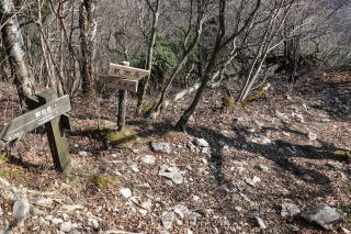 山頂を下ると、すぐ分岐を示す表示板が現れた。