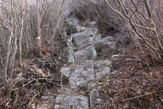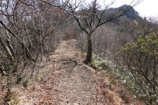 藪をかき分けて進んでいくと、やがて正規の尾根道が前方に見えた。