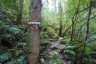 ここから右に沢を渡ると鬼ヶ鼻岩ルートになるのだが、この先にあるメタセの森を見たいので、直進した。