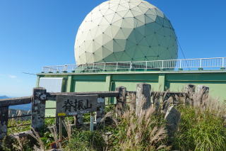 後ろに見える球体は、航空自衛隊レーダー基地の設備だそうで、遠くから見えるので、脊振山のシンボルのようになっている。